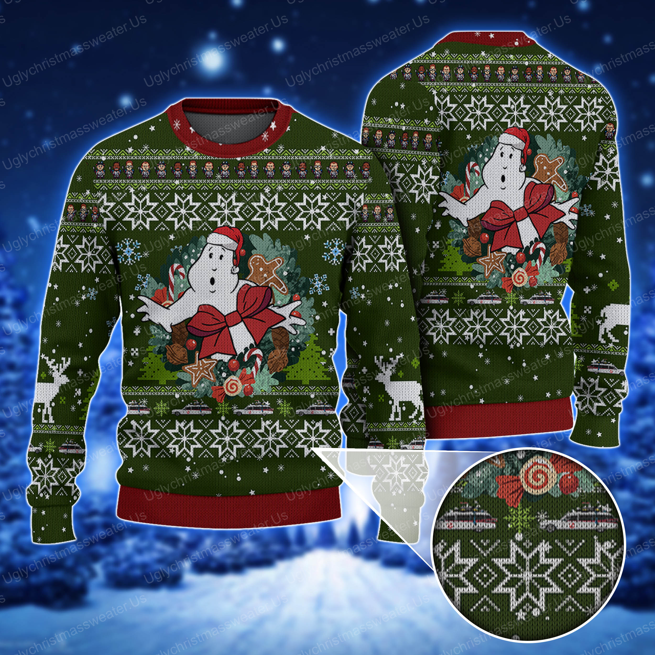 Be the first to review “Ghostbusters Gift Box Style Dark Green And Crimson Red Ugly Christmas Sweater”