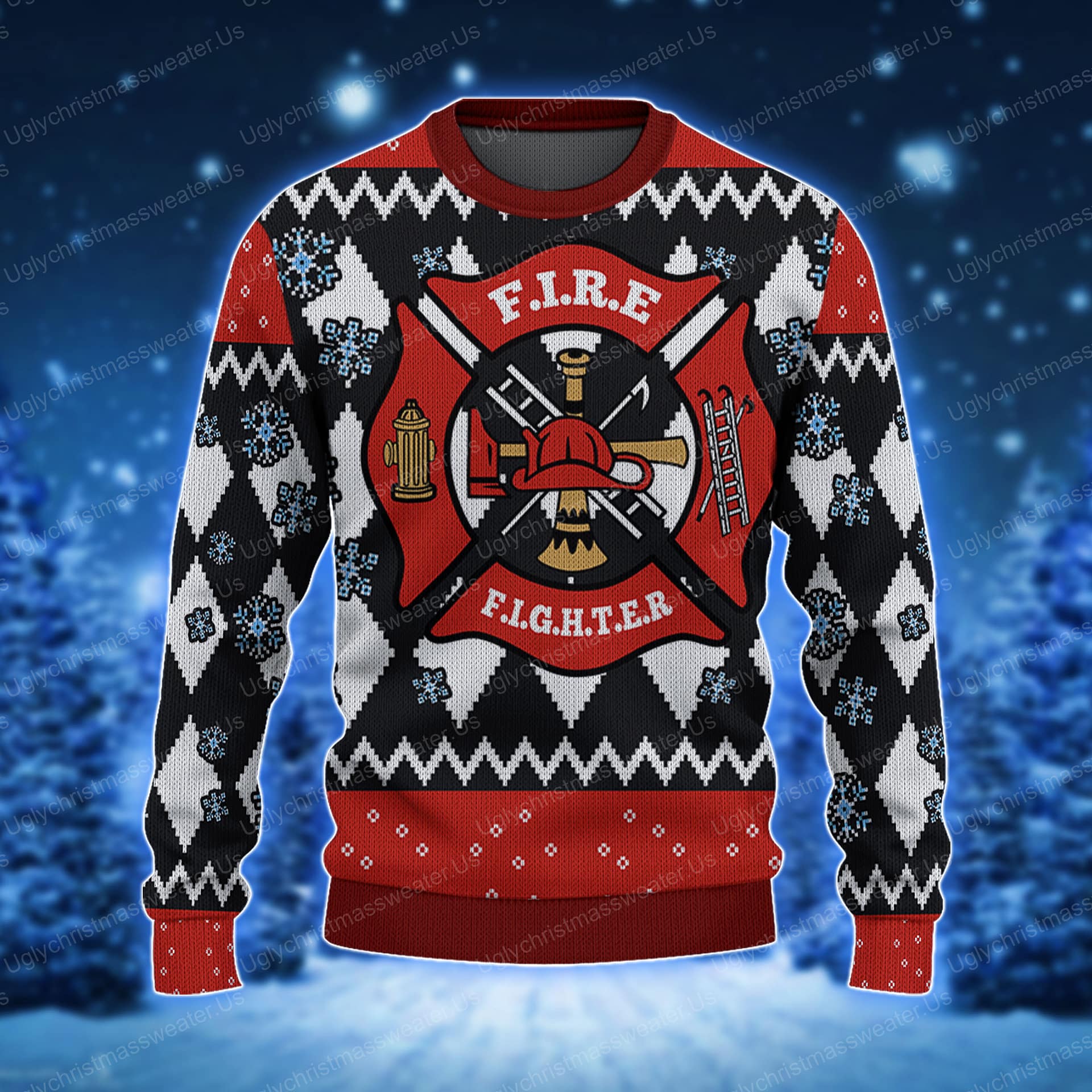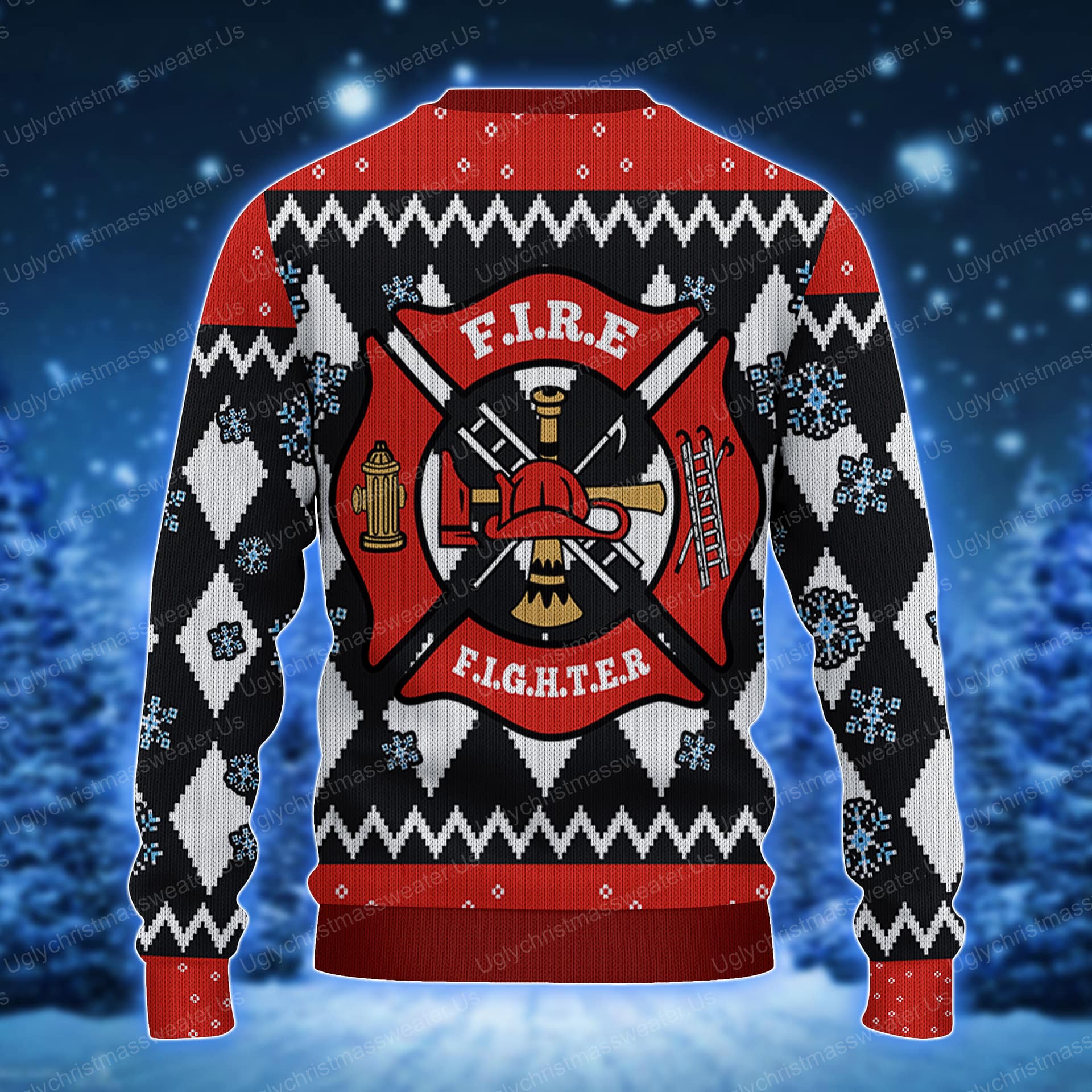 Red Fire Department Badge Christmas Sweater Red And Black - Uglychristmassweater.us