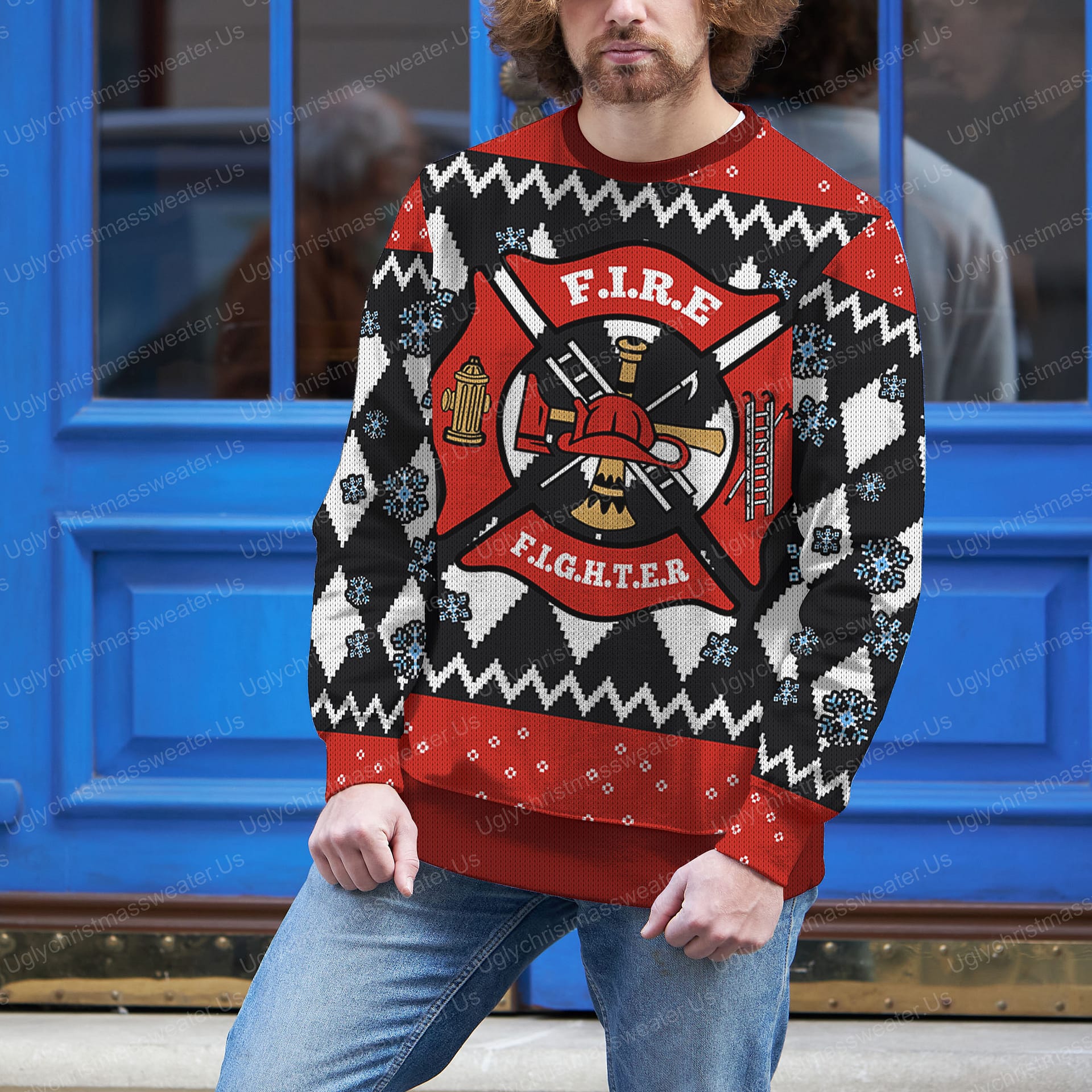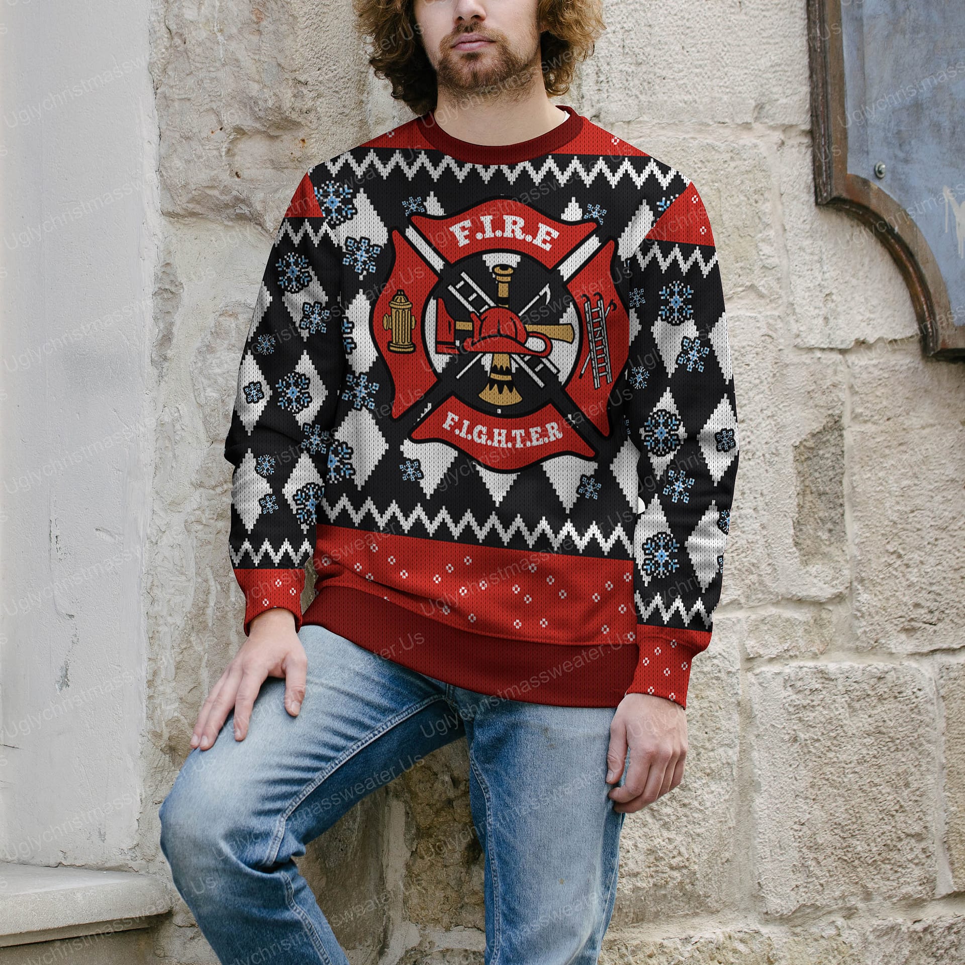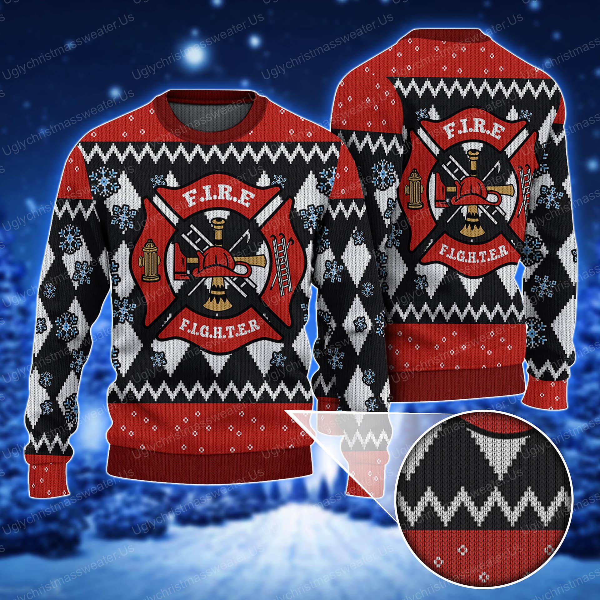 Be the first to review “Red Fire Department Badge Christmas Sweater Red And Black”