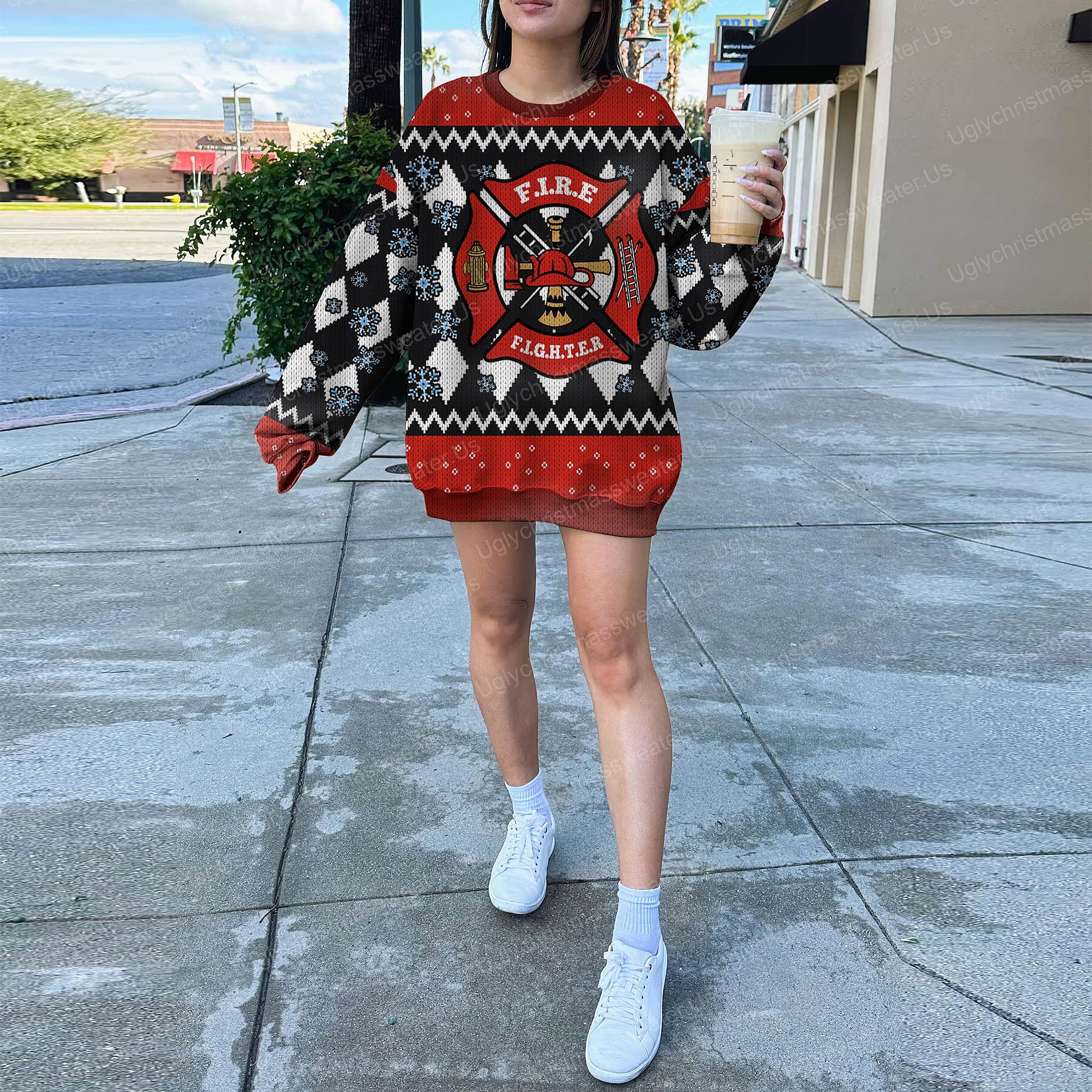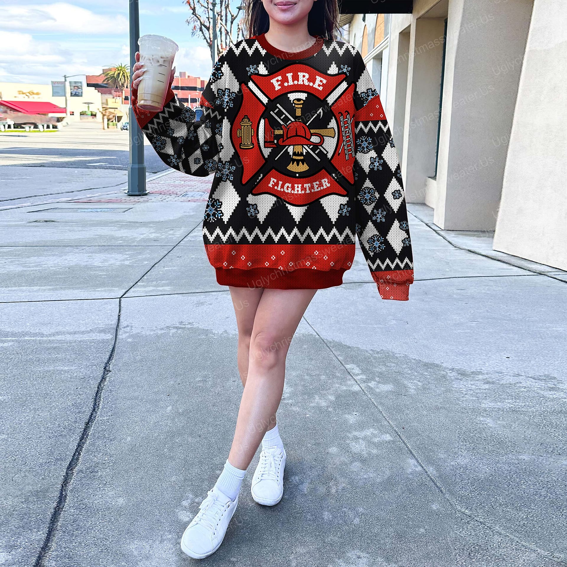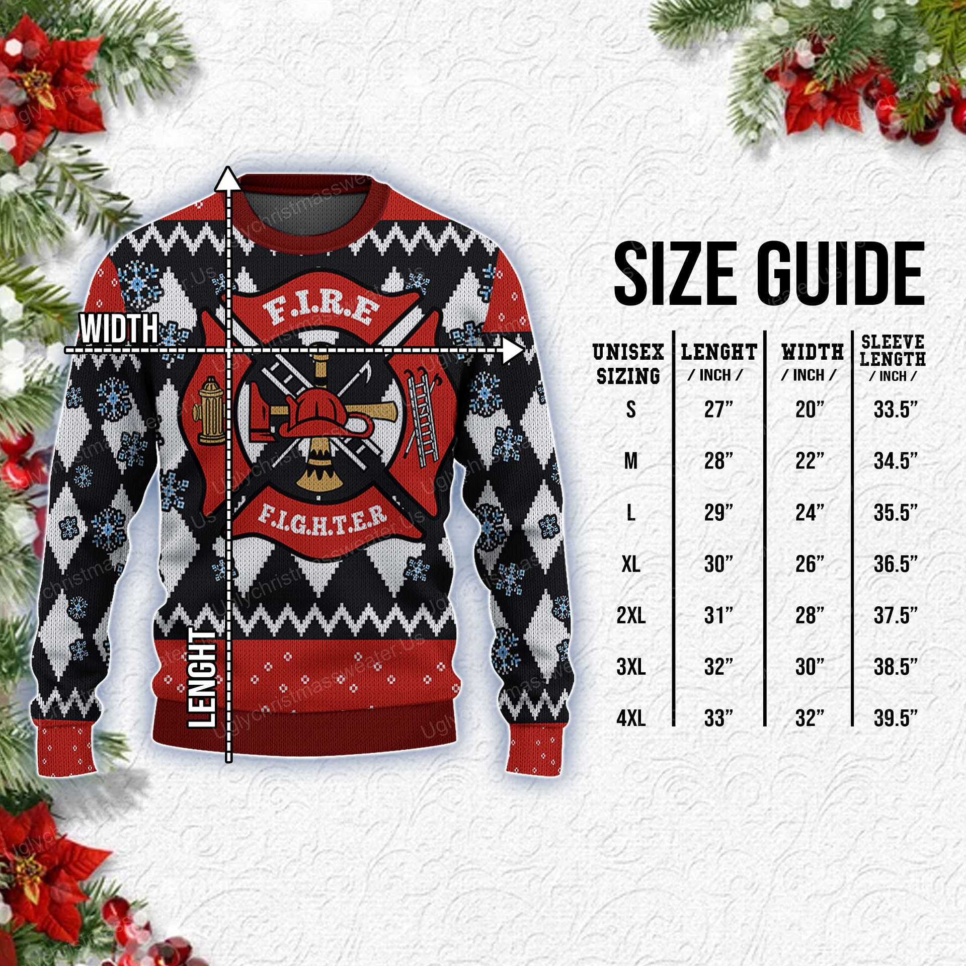 Be the first to review “Red Fire Department Badge Christmas Sweater Red And Black”