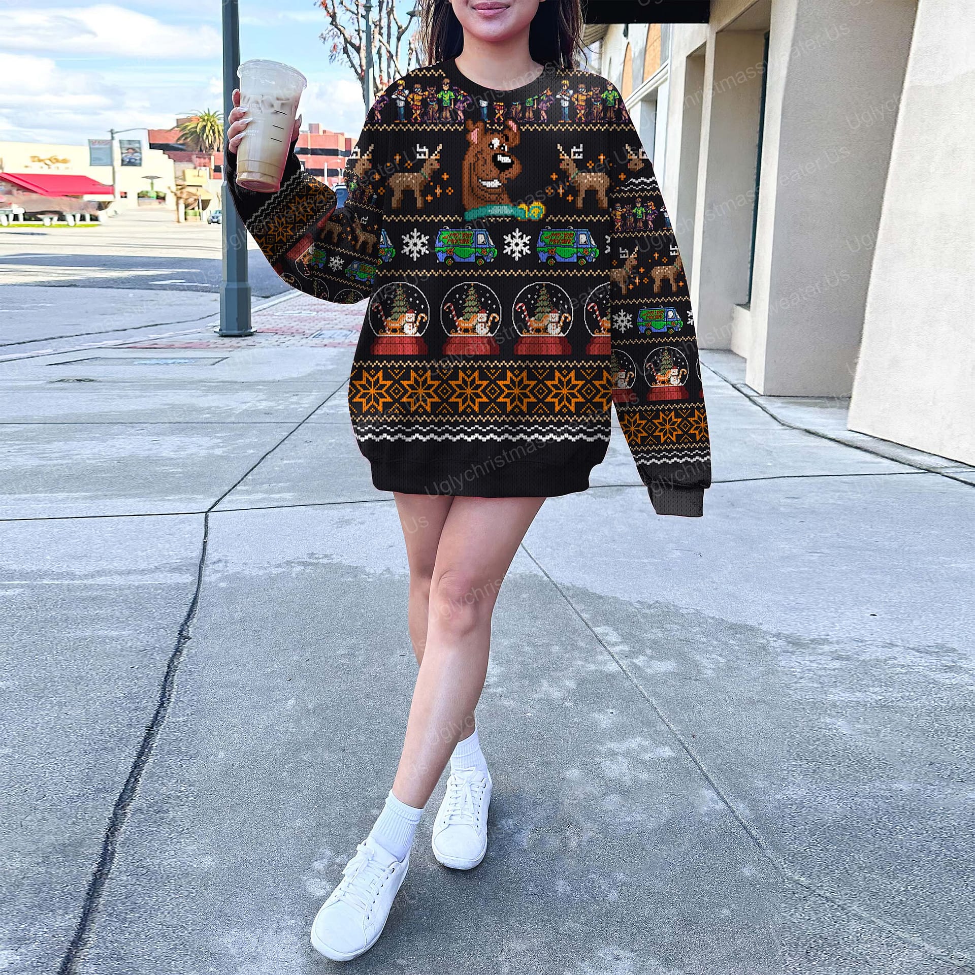 Scooby Doo With Snowman Sleigh Deer Car Pattern Xmas Sweaters